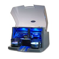 Passend hierfür haben wir CD/DVD-Drucker und CD/DVD-Drucksysteme für unterschiedliche Anforderungen. Das beginnt bei kleine Desktop CD/DVD-Autoprinter und geht bis zu CD/DVD-Druckautomaten die mit unterschiedlichsten CD-Druckern und CD-Magazinschächten bestückt sind und somit die Automatischen Standalone CD/DVD/BD Duplizierer optimal ergänzen. Bei den CD/DVD-Drucker gibt es eine große Auswahl an unterschiedlichen CD/DVD-Drucktechnologien. InkJet CD-Drucker die preiswert und flexibel sind, CD-Thermodrucker die einen hohen Einstandspreis haben aber bei späterer Produktion durch niedrige Druckkosten überzeugen können bis zu den Thermo-Re-Transfer CD-Drucksystemen die mit absolut brillantem Druckergebnissen glänzen können.